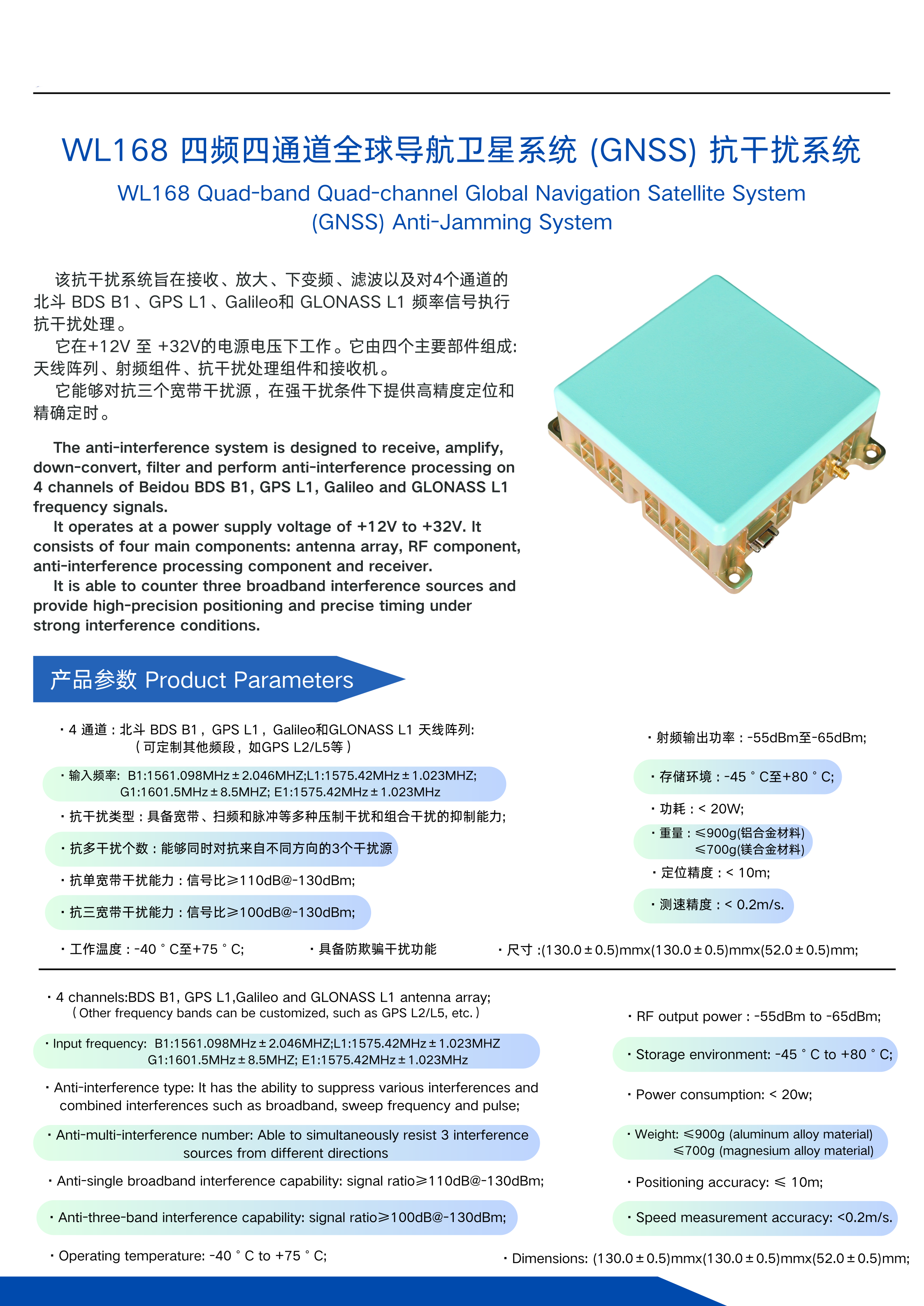 ...WL168 Quad-band Quad-channel Global Navigation Satellite System (GNSS)Anti-Jamming System