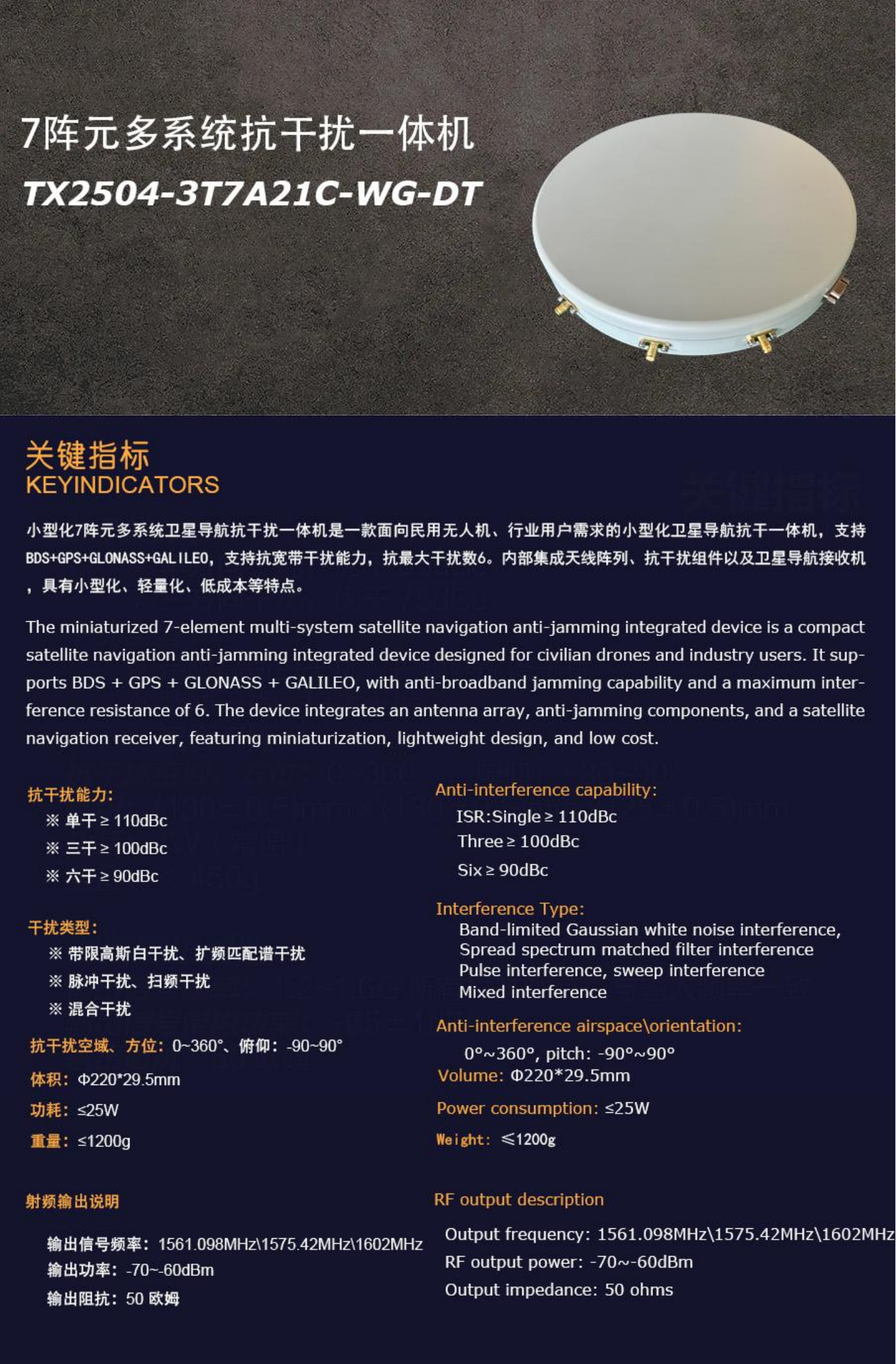 7阵元多系统抗干扰一体机(防欺骗)7-element multi system anti-interference integrated machine (anti deception)